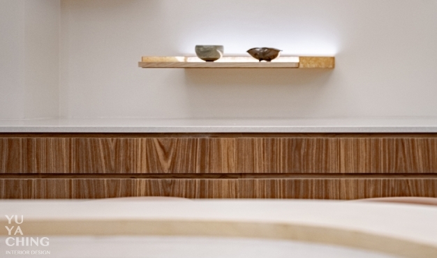 正因業主沈靜包容的料理精神,游雅清空間設計也不囿於傳統日式精緻料理的空間符號,跳脫大面積木質格柵或石材鋪陳,改以更簡練抽象的隱性線條,敘述料理中「專心只將一件事做至完美」的匠心,以期來訪者感受隱密卻毋需拘謹、精緻卻非強勢的用餐體驗。