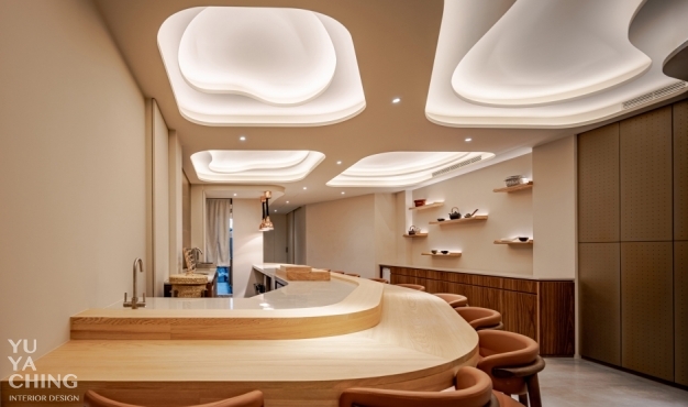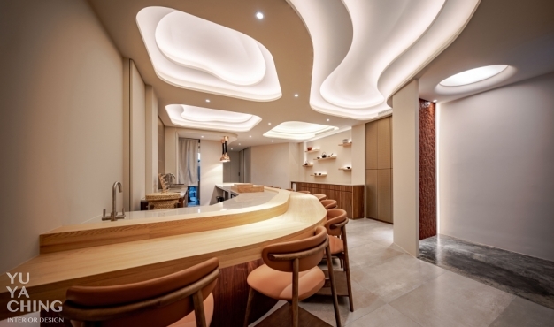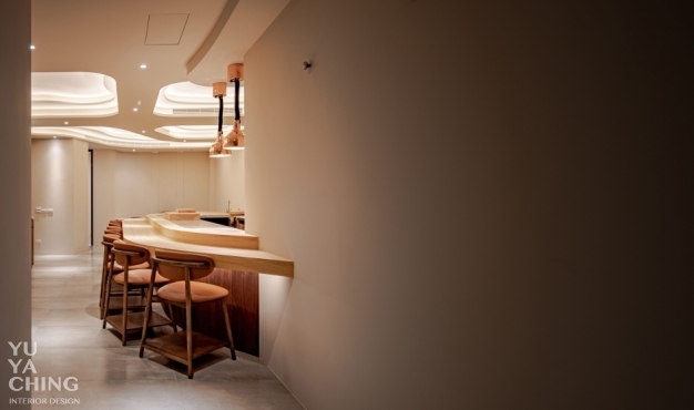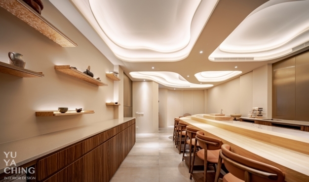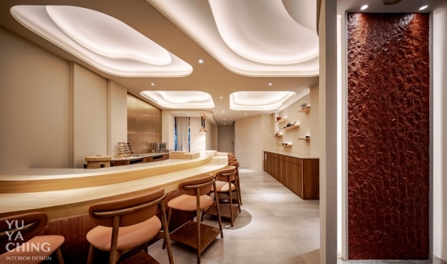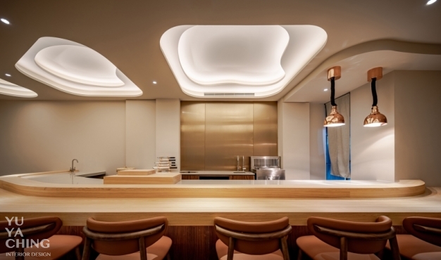 本案業主為日式精緻料理餐廳「謙壽司」主廚,不僅內蘊數十載料理經驗,亦熟知山海食材滋味及最佳表現手法,納入法式料理講究擺盤的意念,努力在道道作品呈現豐饒與內斂的精細平衡。